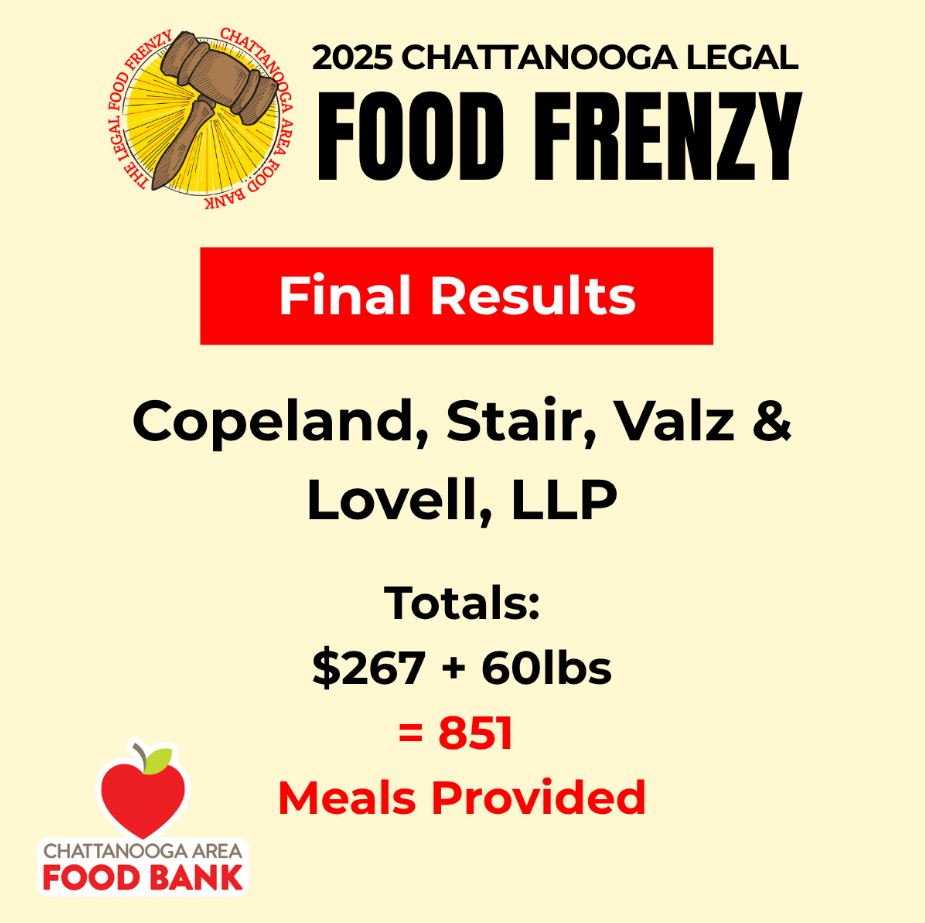 Tennessee office participates in local “Legal Food Frenzy,” raising funds for Chattanooga Area Food Bank